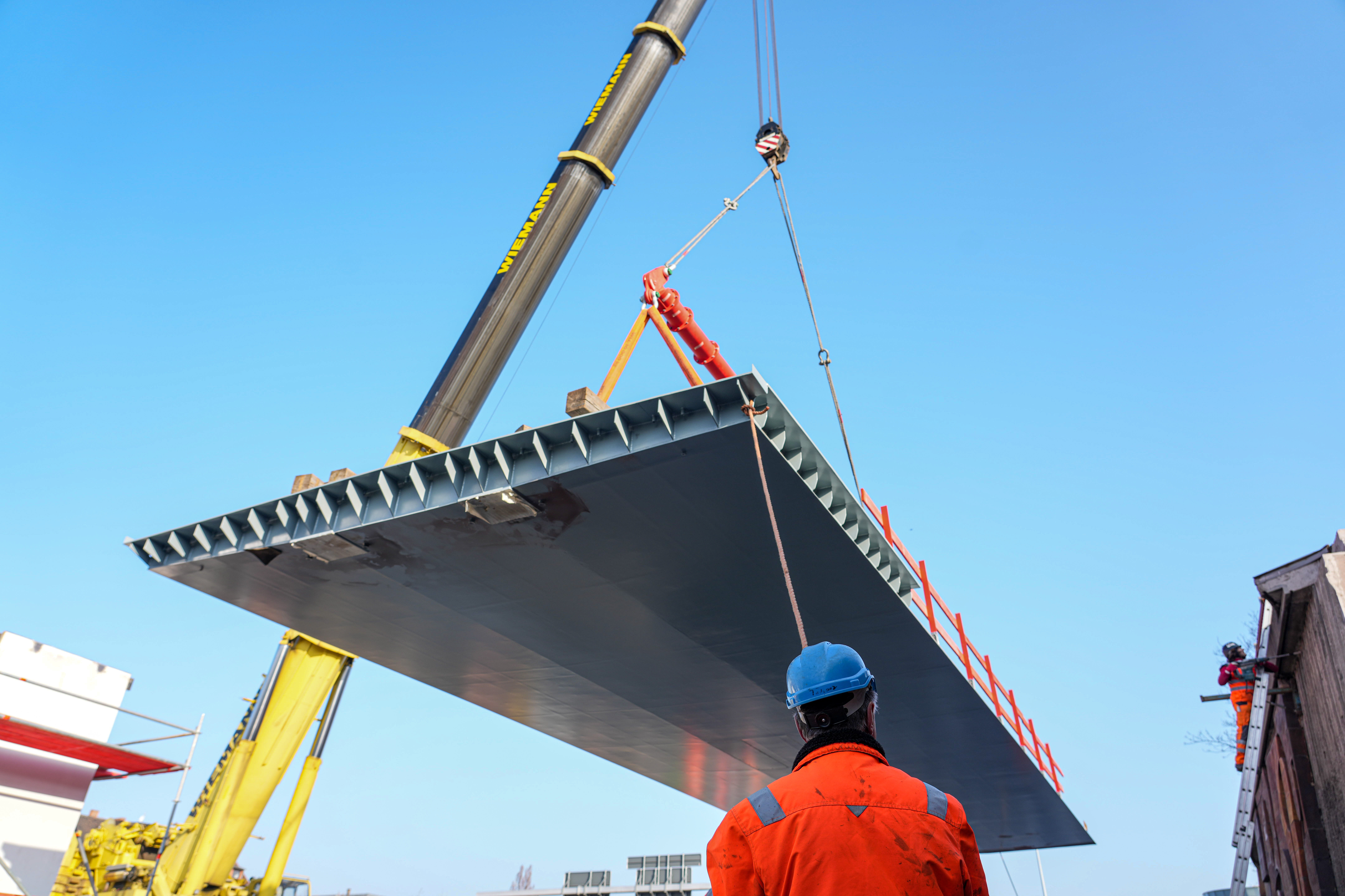 Im Mai/Juni werden die letzten Teile eingehoben, damit die Brücke Ende Oktober für die erwartungsvollen Erfurter Fußgänger und Fahrradfahrer geöffnet werden kann.