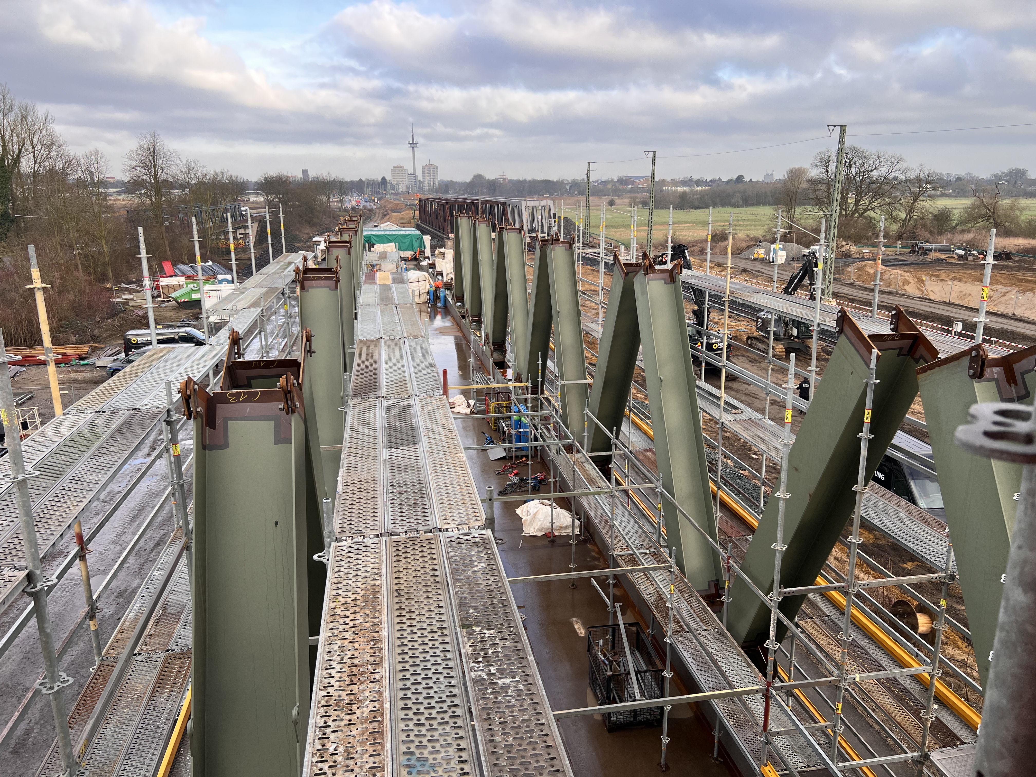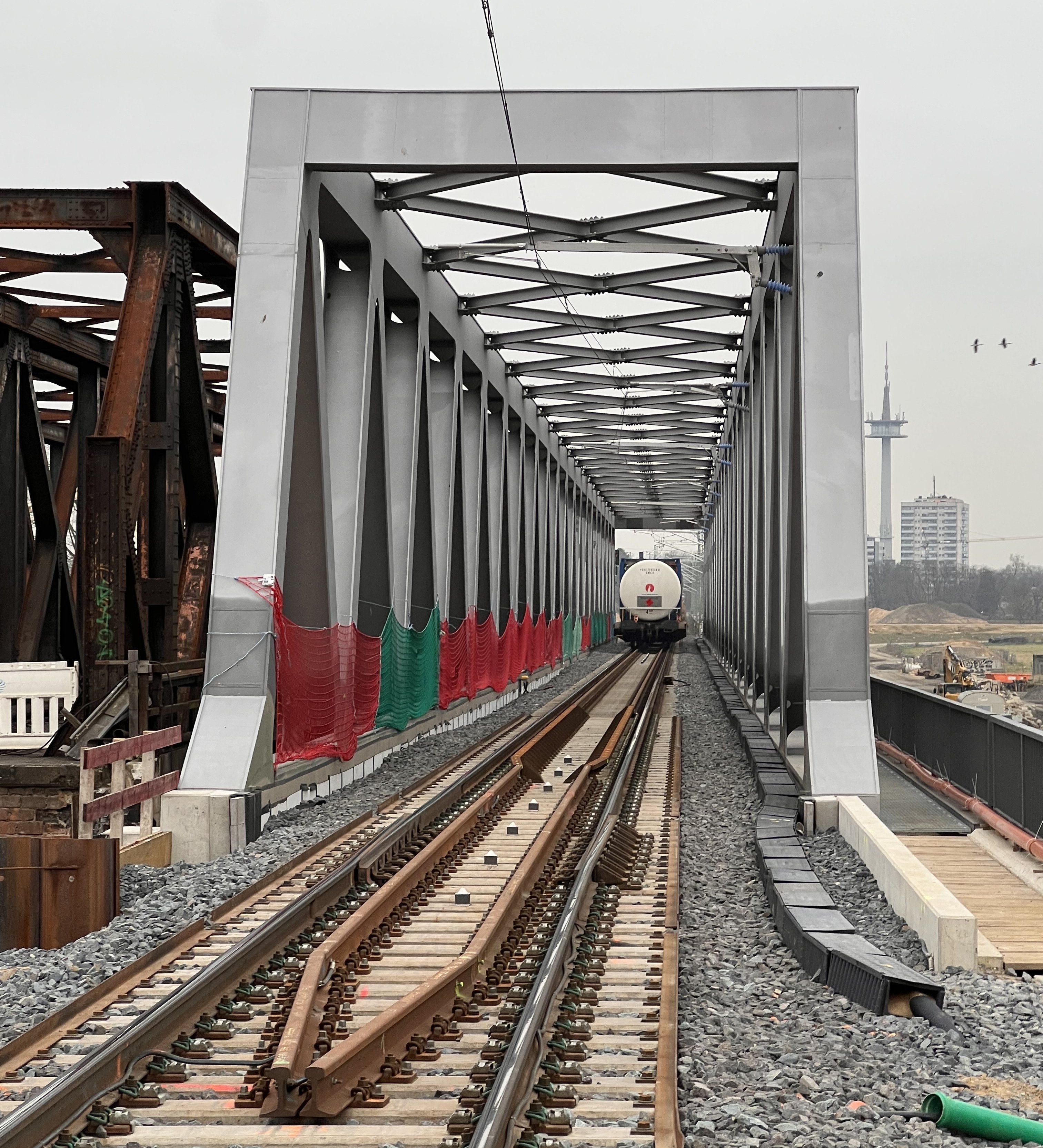 Der erste Überbau der EÜ Lippe Gleis 2270a wurde im Oktober 2024 über die Lippe verschoben und mittlerweile in Betrieb genommen. Der zweite Überbau Gleis 2279 befindet sich in Vormontage. Die Arbeiten laufen nach Plan. Derzeit ist die gesamte Fahrbahnlänge von 156 m vormontiert, davon sind ca. 30 m final geschweißt und ZfP geprüft.