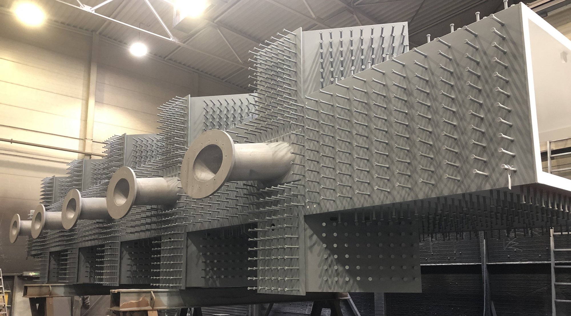 Die Strahlkabine ist ein abgesonderter und in der Breite erweiterbarer Bereich mit erforderlichen Sicherheitsvorkehrungen in der Korrosionsschutzhalle.